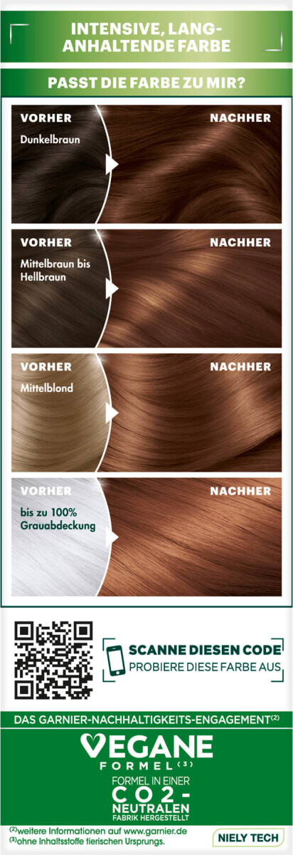 Накройте одежду старой тканью. полотенце, наденьте одноразовые перчатки и смешайте краску в прилагаемом флаконе согласно инструкции по применению. Теперь нанесите готовую смесь прямо на сухие волосы по пробору и распределите пальцами от корней. Дайте цвету подействовать, а затем смойте теплой водой. Нанесите средство по уходу и снова смойте через 2 минуты.