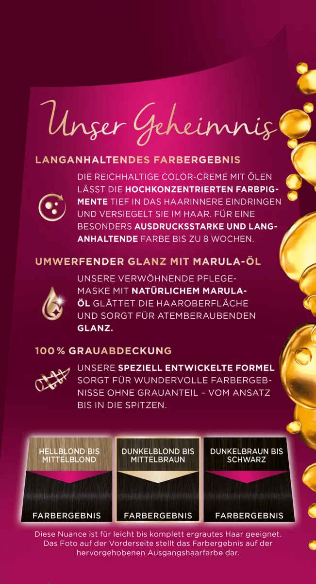 Этот оттенок предназначен для Подходят следующие натуральные цвета волос: от светло-русого до средне-русого, от темно-русого до средне-коричневого, от темно-коричневого до черного. Этот оттенок подходит для слегка или полностью седых волос. Точное применение указано на вкладыше.
