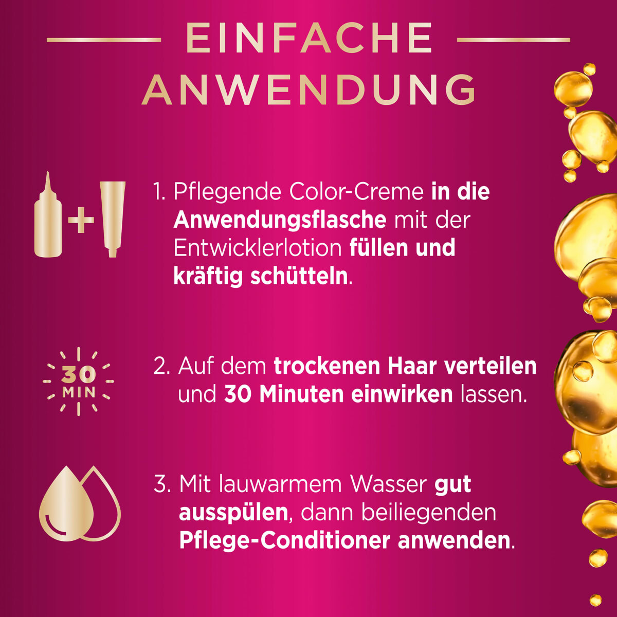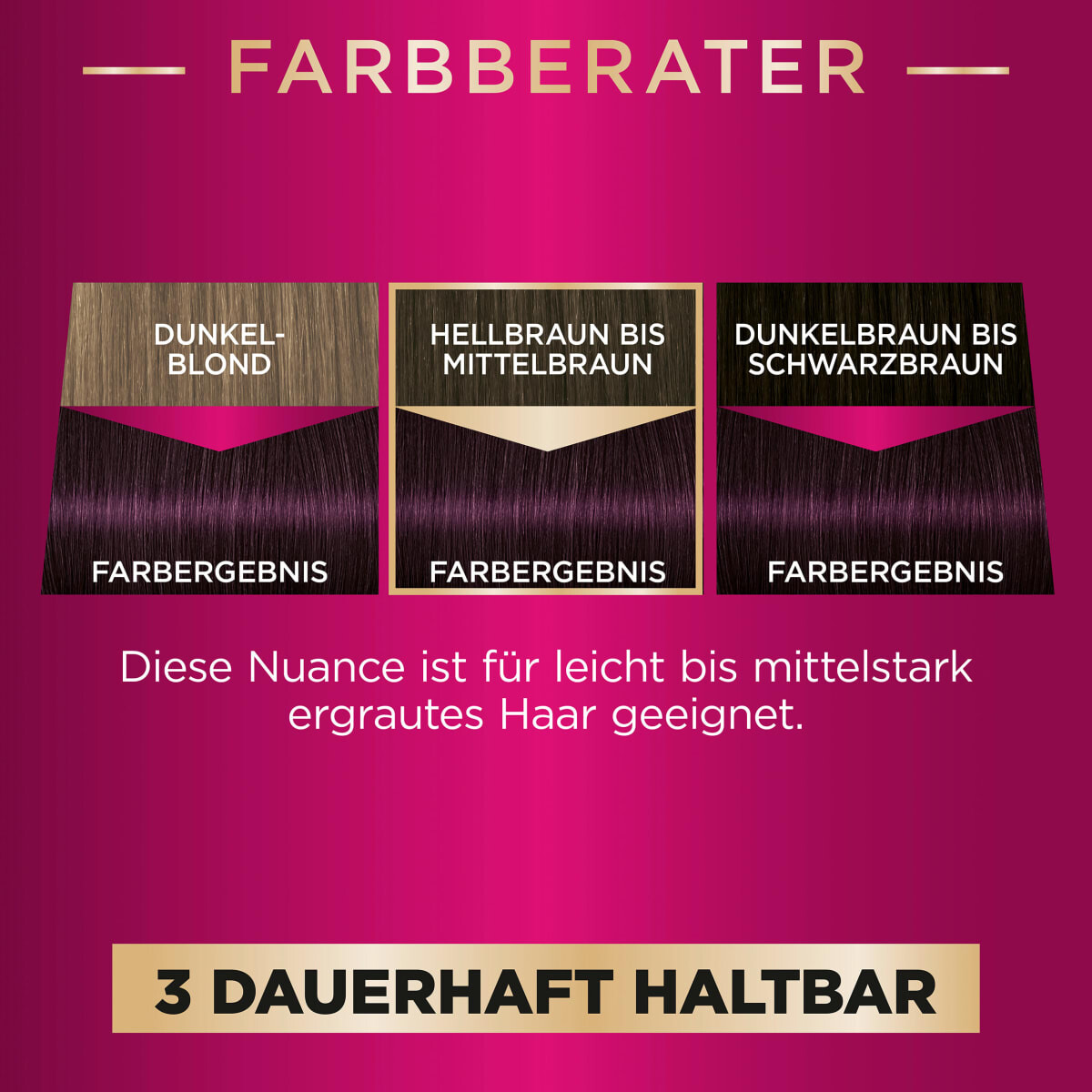 Этот оттенок подходит для следующих натуральных цветов волос: темно-русый, светло-коричневый, от средне-коричневого до черно-коричневого. Этот оттенок подходит для седых волос от легкой до средней степени. Точное применение указано на вкладыше.