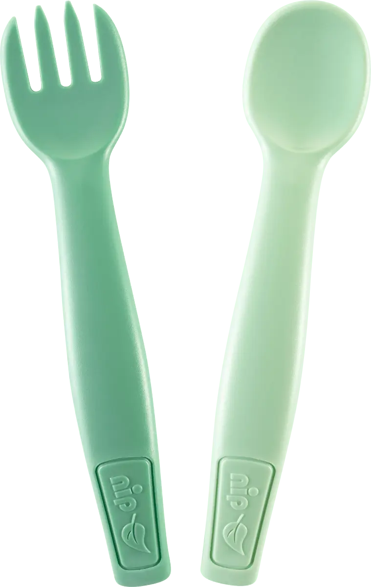 Время для экологически чистых, инновационных продуктов: столовые приборы Eate Green Learning Green от Nip состоят более чем на 94% из возобновляемого сырья (сахарного тростника). Упаковка экологична и безвредна для окружающей среды, бумага более чем на 90% состоит из переработанного картона. Набор из 2 штук, состоящий из вилки и ложки. Ложка имеет дополнительную плоскую чашу, специально предназначенную для самостоятельного раздачи детского питания ложкой - чашу ложки можно легко полностью опорожнить с помощью небольшого рта ребенка *Упаковка содержит не менее 70% переработанного материала. *Упаковка содержит не менее 70 % переработанного материала.