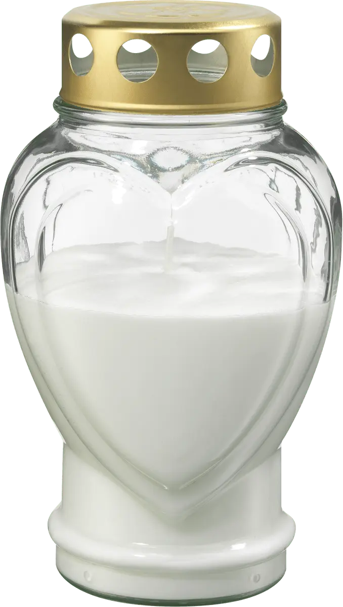 Очень привлекательный и с любовью оформленный могильный светильник Profissimo в стеклянном сердце горит до 80 часов.