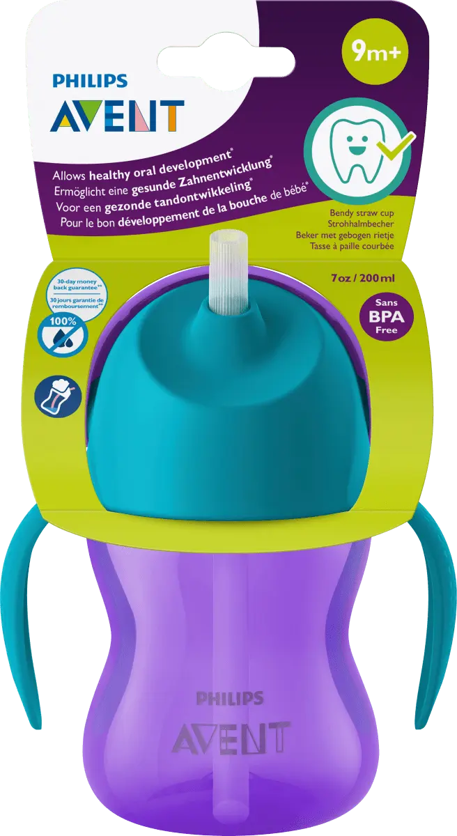 The Philips Чашка Avent с гибкой соломинкой совместима с бутылочками Philips Avent Natural и Classic+ (за исключением стеклянных бутылочек), а также со всей нашей линейкой чашек (кроме чашки для питья для взрослых). Чашка Philips Avent с гибкой соломинкой легко собирается и разбирается. Для большего удобства все детали можно мыть в посудомоечной машине.
