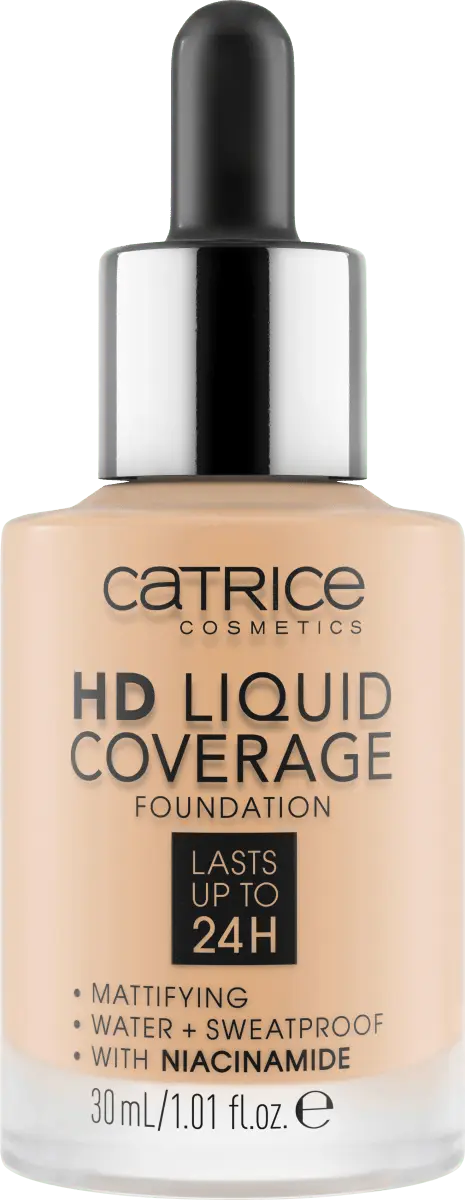 Тональная основа Catrice HD Liquid Coverage Foundation телесного цвета 008 обеспечивает ровный цвет лица. Отделка высокой четкости. Сверхлегкая жидкая текстура наносится пипеткой-аппликатором, обеспечивает плотное покрытие и держится до 24 часов. Доступен в 4 цветах для разных оттенков кожи.