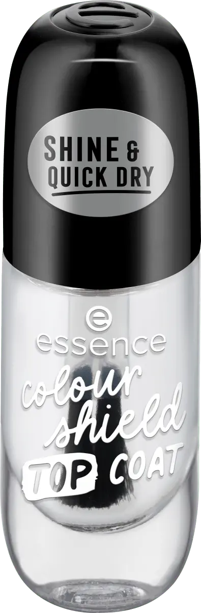 Верхнее покрытие Color Shield от Essence является защитным щитом для блестящих гелевых ногтей. Образует защитный слой на ногтях и цветном лаке. Верхнее покрытие обеспечивает долгую стойкость цвета ногтей и создает глянцевый гелевый финиш. С веганским, чистым косметическим составом.