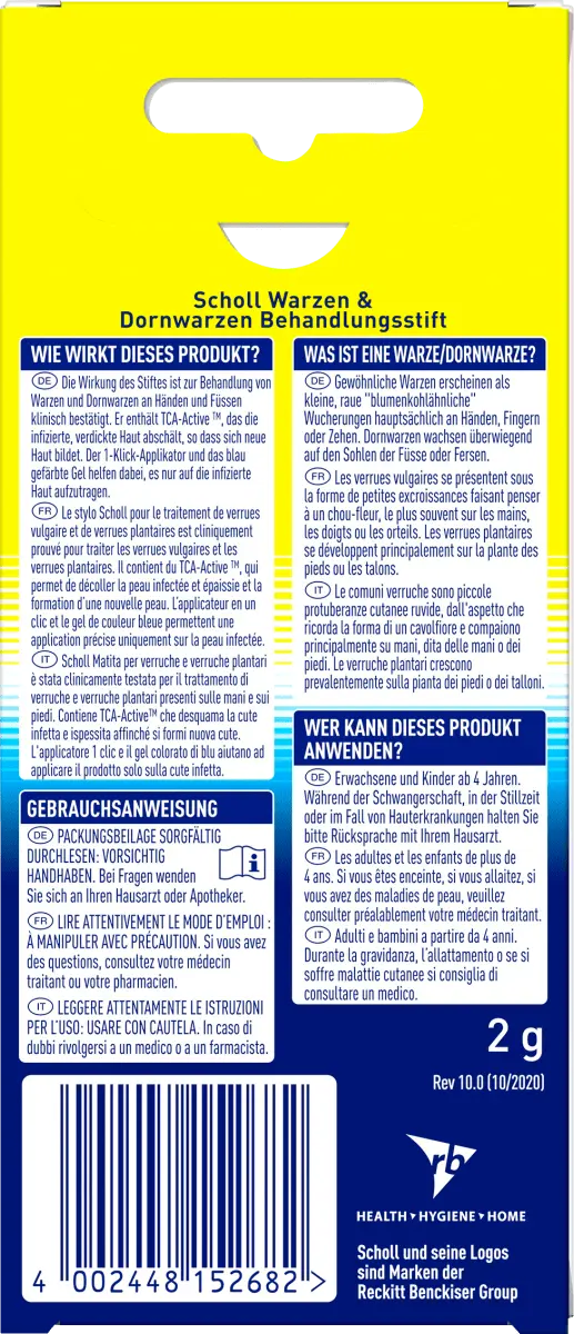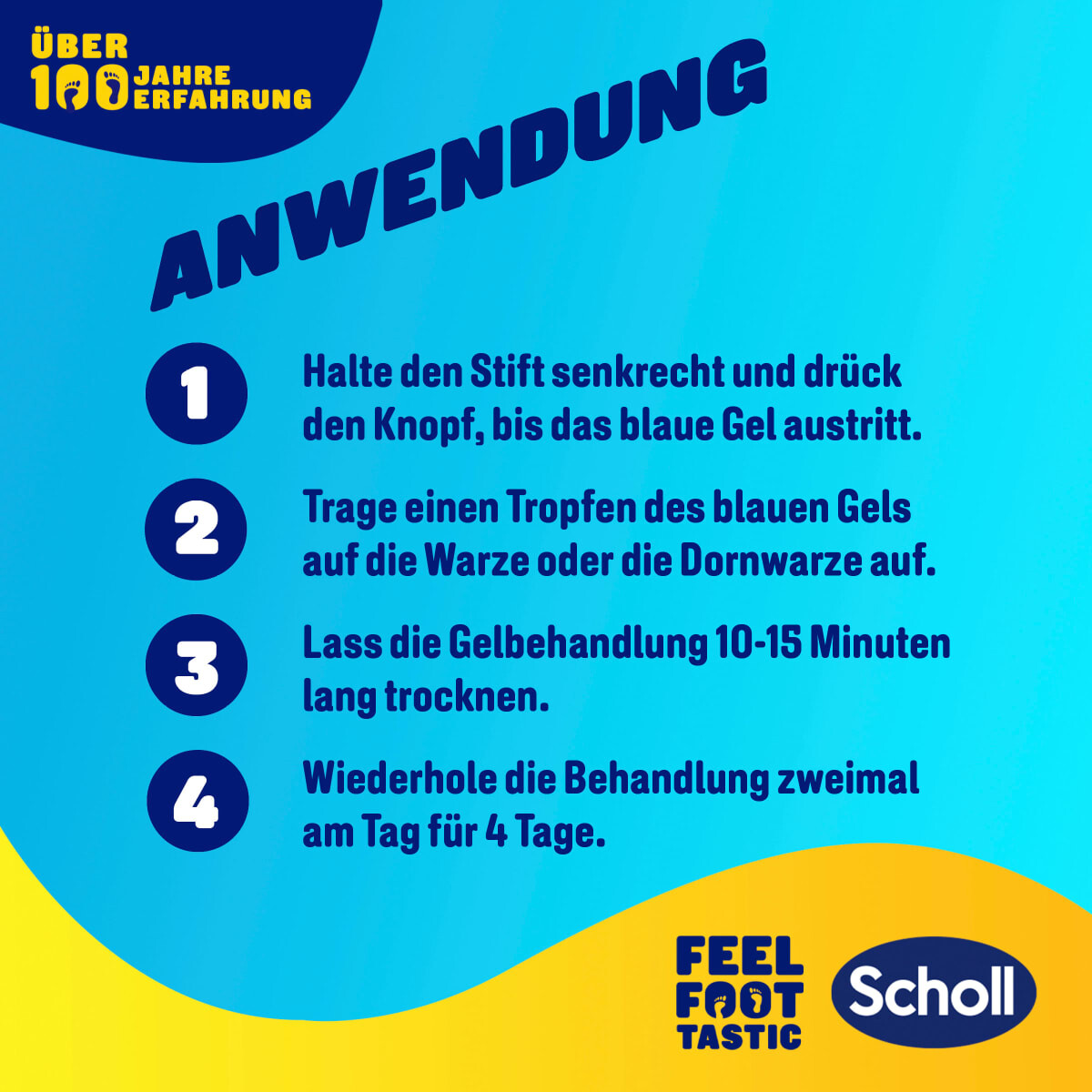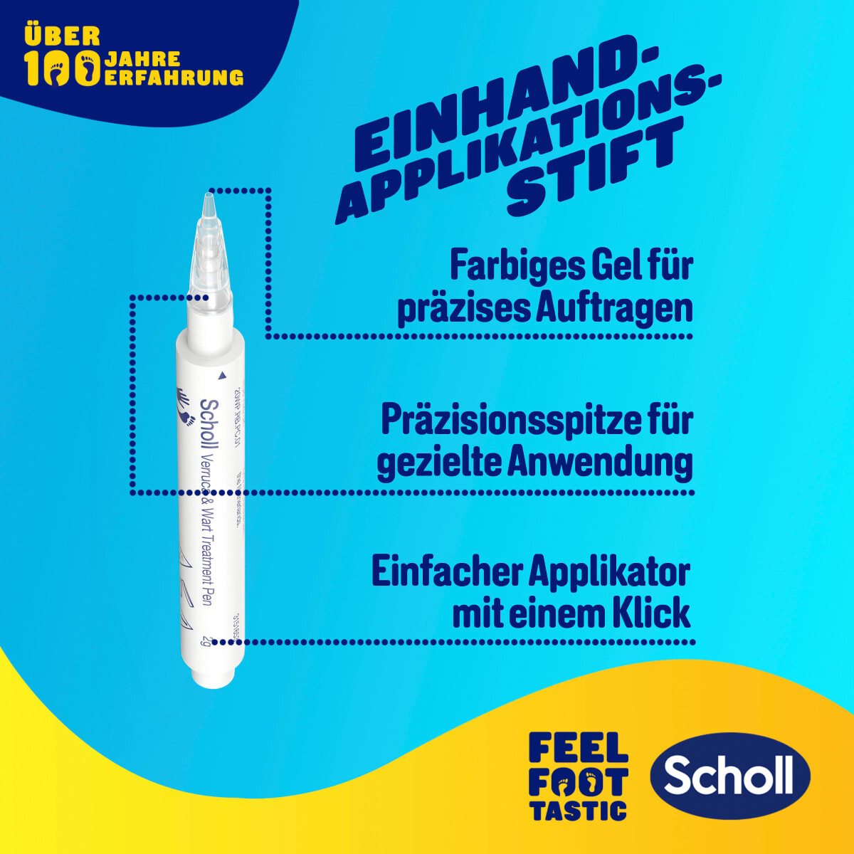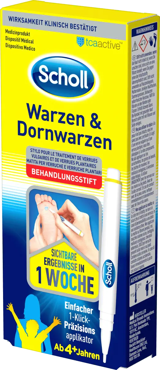 Ручка для лечения бородавок и подошвенных бородавок Scholl помогает лечить обыкновенные бородавки, которые выглядят как небольшие грубые наросты, похожие на цветную капусту, преимущественно на руках, пальцах рук или ног. Подошвенные бородавки преимущественно растут на подошвах ног или пятках. Оба очень заразны и встречаются у 3 из 4 человек в течение жизни. Ручка для лечения бородавок и подошвенных бородавок — медицинский препарат для эффективного и быстрого самостоятельного лечения бородавок и подошвенных бородавок. Он также подходит для детей от 4 лет и старше.
