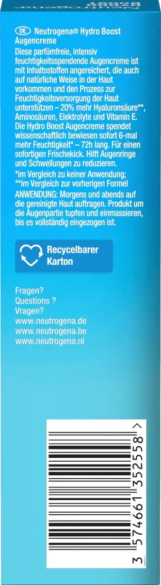 Бодрящий крем-гель для век от Neutrogena Hydro Boost помогает в течение дня начинать с освежающего увлажнения. Обогащенный комплексом гиалуронового геля, он является оптимальной основой под макияж. Освежающий уход 3-в-1 предлагает: 1. Укрепление защитного барьера кожи. 2. Увлажняет на 24 часа. 3. Абсолютная свежесть. Аромат бесплатно. Также подходит для чувствительной кожи.