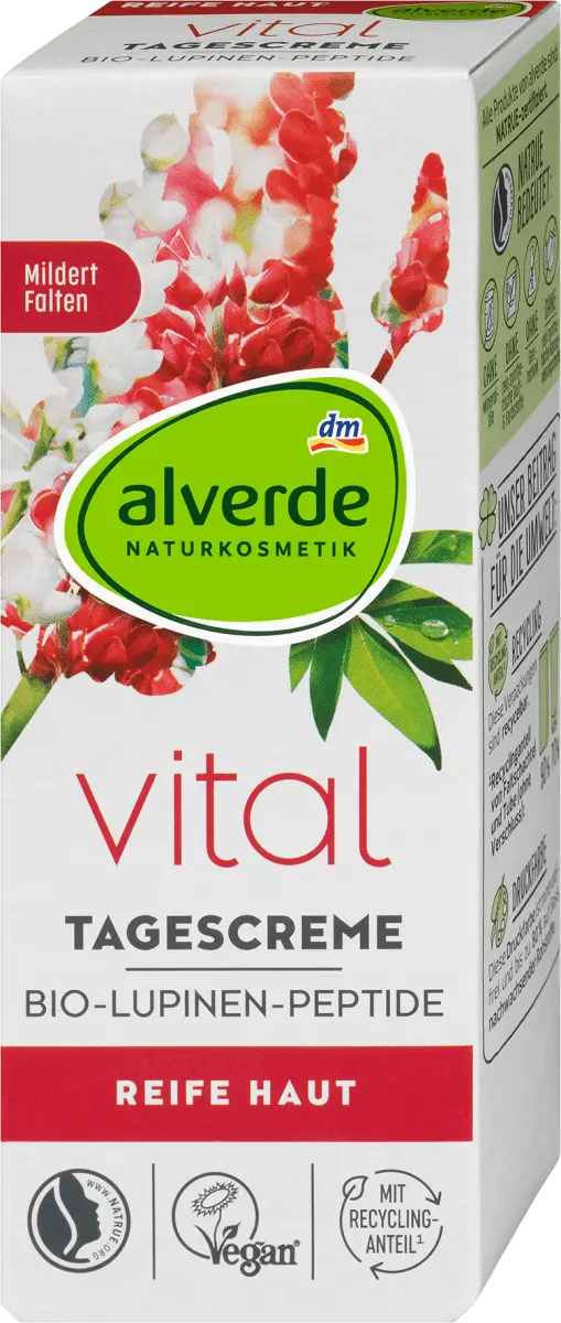Наносите крем на лицо, шею и зону декольте утром после очищения. В качестве оптимальной добавки для ухода мы рекомендуем ночной крем с пептидами люпина Alverde Vital и пептиды люпина с кремом для глаз Alverde Vital.