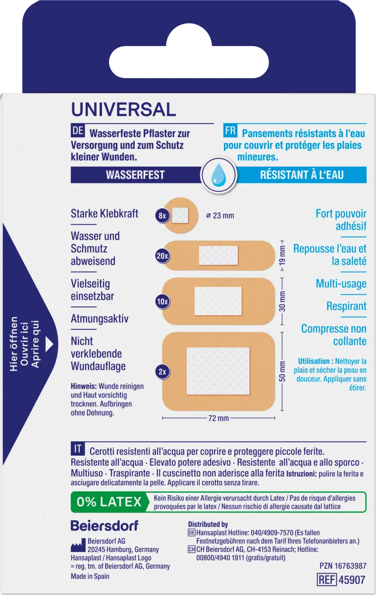 Универсальные полоски Hansaplast идеально подходят для всех типов небольших ран и травм. Нелипкая раневая повязка содержит воздухопроницаемый и водоотталкивающий материал. Он также очень липкий и поэтому не может легко скользить.