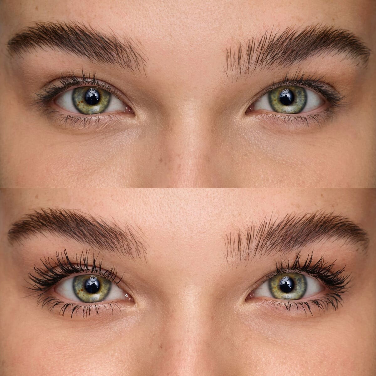 Длинные объемные ресницы визуально открывают глаза и делают взгляд более внимательным. Чтобы придать ресницам свежий вид, придайте ресницам форму с помощью щипцов для завивки ресниц и нанесите тушь мягкими зигзагообразными движениями, начиная с корней. Если вы хотите, чтобы несколько слоев туши придали объем, дайте каждому слою немного высохнуть. Это предотвращает слипание текстуры на ресницах.