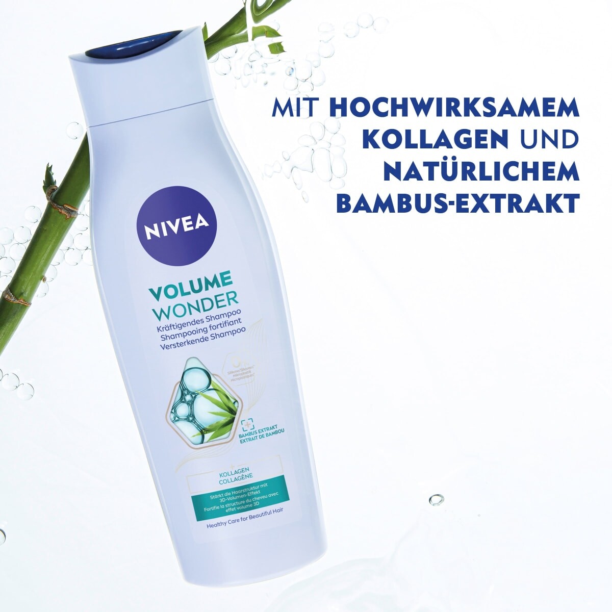 Веганский шампунь NIVEA для объема и силы с балансом pH и сывороткой для блеска NIVEA и экстрактом бамбука придает вашим волосам заметно больший объем, силу и естественный блеск. Биоразлагаемая на 98% формула (в соответствии со стандартами ОЭСР или эквивалентными стандартами) с дерматологически подтвержденной совместимостью с кожей гармонирует с естественным значением pH волос и кожи головы и не содержит силиконов и твердых микропластиков, а также водорастворимых чисто синтетических полимеров (согласно определению ЮНЕП). ).