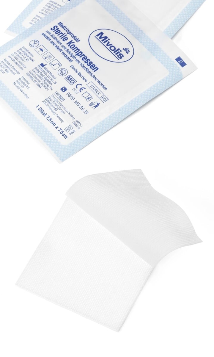 Стерильные компрессы Mivolis подходят для покрытия и очистки поверхностных ран. Компрессы абсорбирующие и дышащие, индивидуально и стерильно упакованы. *Упаковка содержит не менее 70 % переработанного материала.