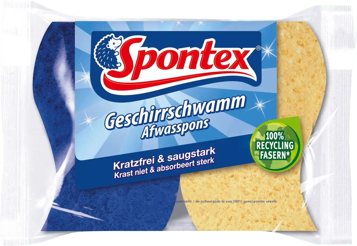 >Губка для мытья посуды Spontex имеет чистящую сторону, не допускающую царапин, которая мягко удаляет грязь, и впитывающую вискозную сторону, которая впитывает грязь. Чистящая сторона изготовлена ​​из переработанных пластиковых бутылок.
