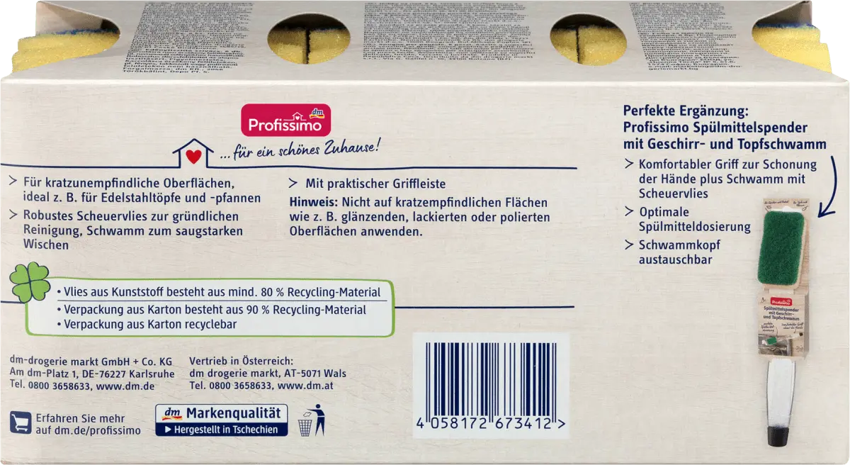 Губки для кастрюль от Profissimo тщательно очищают нечувствительные поверхности. Прочная чистящая ткань обеспечивает тщательную очистку, губка подходит для протирки с высокой впитывающей способностью.br>Для чистки кастрюль, сковородок и всех нечувствительных поверхностей