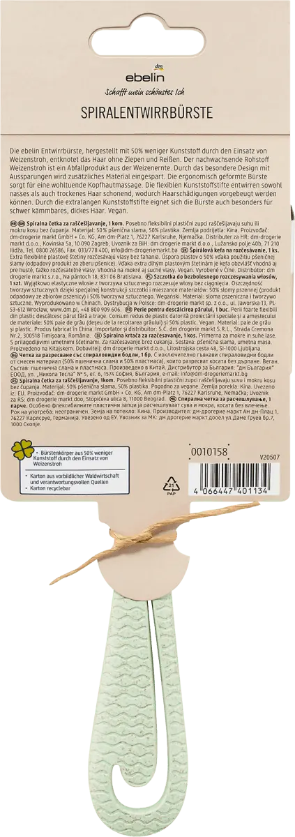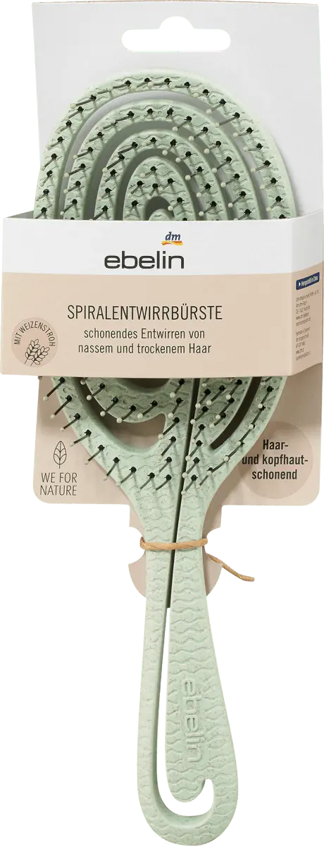 Щетка для распутывания волос ebelin изготовлена ​​на 50% меньше пластик за счет использования пшеничной соломы распутывает волосы, не выдергивая и не рвя их. Пшеничная солома из возобновляемого сырья является отходом урожая пшеницы. Специальная конструкция с вырезами экономит дополнительный материал. Щетка эргономичной формы обеспечивает успокаивающий массаж кожи головы. Гибкие пластиковые шпильки бережно распутывают как влажные, так и сухие волосы, что помогает предотвратить их повреждение. Удлиненные пластиковые штифты делают щетку особенно подходящей для трудно расчесываемых густых волос. Этот товар доступен в различных цветах/мотивах. К сожалению, предварительно выбрать конкретный цвет или мотив для этого заказа невозможно.