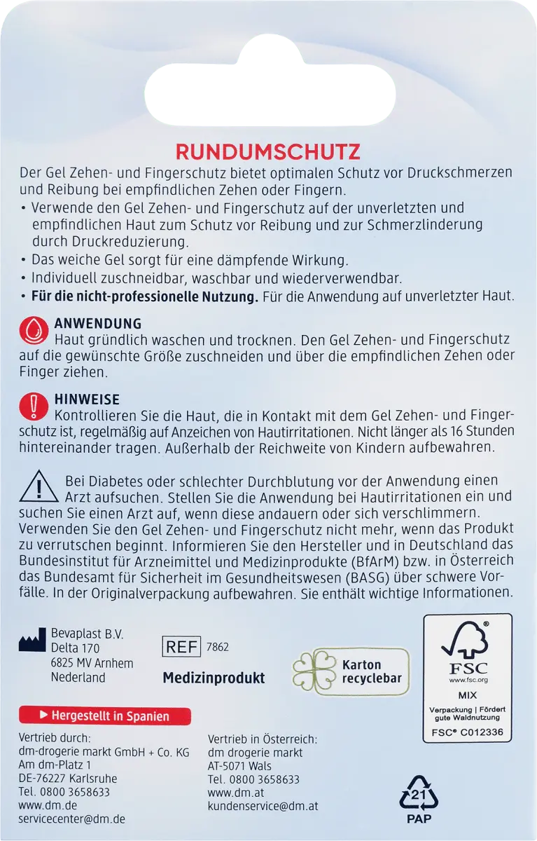 Гелевая защита пальцев ног и пальцев Balea может защитить чувствительные пальцы ног или пальцев от боли при надавливании и трения. Материал легко режется и его можно стирать.