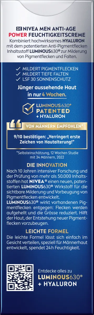 br>Увлажняющий крем Anti-Age 2in1 Power от NIVEA MEN придает коже свежесть и сияние молодости. Крем помогает заметно уменьшить глубокие морщины и даже уменьшить пигментные пятна. Приложение обеспечивает коже длительное увлажнение и даже защищает ее от лучей UVA и UVB. Кожа сияет по-новому и получает интенсивный уход.
