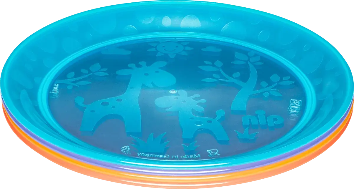 Набор из 4 тарелок от Nip особенно плоский, легкий и штабелируемый. Тарелка идеально подходит для того, чтобы малыши могли кормить или есть самостоятельно. Милый мотив жирафа в ярких тонах подарит хорошее настроение и разнообразие. *Упаковка содержит не менее 70% переработанного материала.