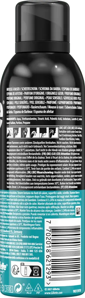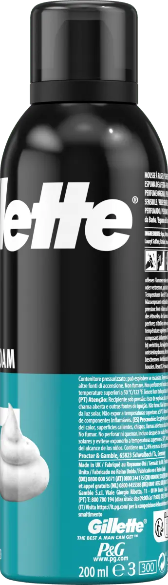 Пена для бритья Gillette Classic Sensitive отличается легкостью и дополнительной защитой чувствительной кожи. Формула комфортного скольжения Gillette также помогает уменьшить раздражение кожи, порезы, жжения и покалывания, обеспечивая чистое и быстрое скольжение лезвия бритвы.