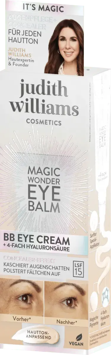 Джудит Крем для глаз Williams Magic Wonder не только обеспечивает разглаживающий и пухлый эффект, но и интенсивно увлажняет кожу вокруг глаз. Темные круги под глазами мгновенно скрываются, а морщины, вызванные сухостью, разглаживаются. Крем также имеет солнцезащитный фактор 15 и не содержит отдушек.