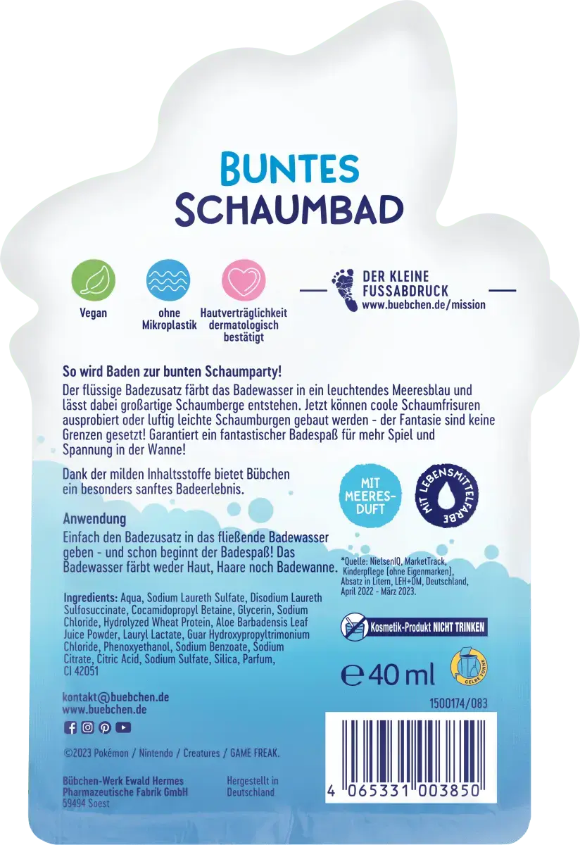 Пенирующая ванна Pokémon Lapras от Bübchen идеально подходит для маленькие фанаты покемонов. Добавка для ванн окрашивает воду в ванне в потрясающий морской синий цвет и придает приятный морской аромат. Состав нежный для кожи. Для фантастического удовольствия от купания.