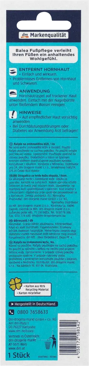 Просто и эффективно: с помощью рашпиля Balea можно легко удалить мозоли и мозоли. Для мягких и приятных ножек и ухоженного ощущения благополучия. Этот товар доступен в различных цветах/мотивах. К сожалению, предварительно выбрать конкретный цвет или мотив для этого заказа невозможно.