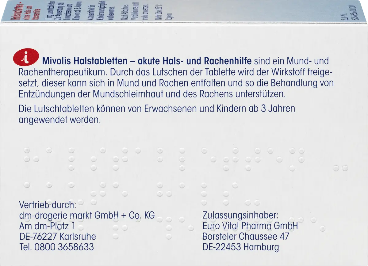 Пастилки для горла «Миволис» - средство для лечения горла и полости рта. При сосании таблетки высвобождается активный ингредиент. Это может развиться во рту и горле и, таким образом, способствовать лечению воспаления слизистой оболочки полости рта и горла. Таблетки для рассасывания могут принимать взрослые и дети от 3 лет и старше.