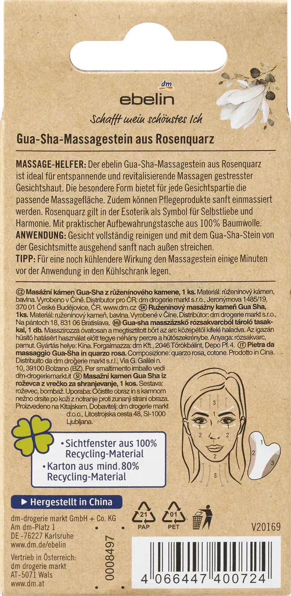 Массажный камень ebelin Gua Sha из розового кварца не только обеспечивает расслабляющий и оздоравливающий массаж напряженной кожи лица, но идеально подходит для массирования в средствах по уходу. Особая форма камня обеспечивает подходящую массажную поверхность для каждой части лица.