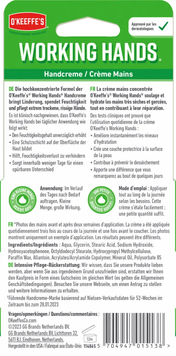 Крем для рук «Рабочие руки» от О Keeffe's интенсивно увлажняет очень потрескавшиеся и сухие руки. Кроме того, крем для рук без запаха не жирный и обеспечивает рукам необходимую защиту. Для интенсивного ухода за кожей рук.