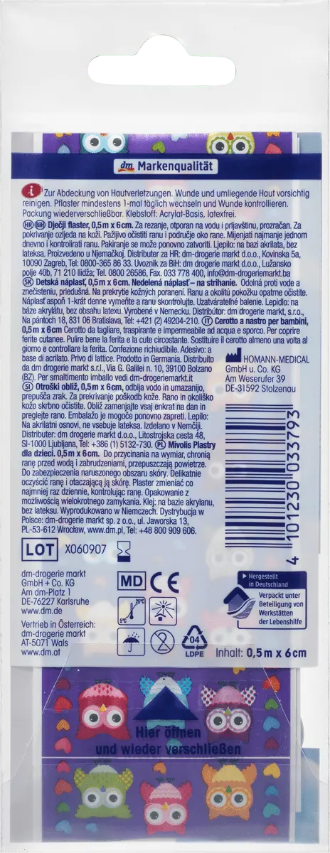 Особенно подходит детский пластырь Миволис в качестве утешительного пластыря для ухода за ранами на чувствительной коже. Гипс надежно приклеивается и снимается безболезненно. Пластырь безопасен для кожи и его можно разрезать индивидуально. Клей: Акриловая основа, без латекса.