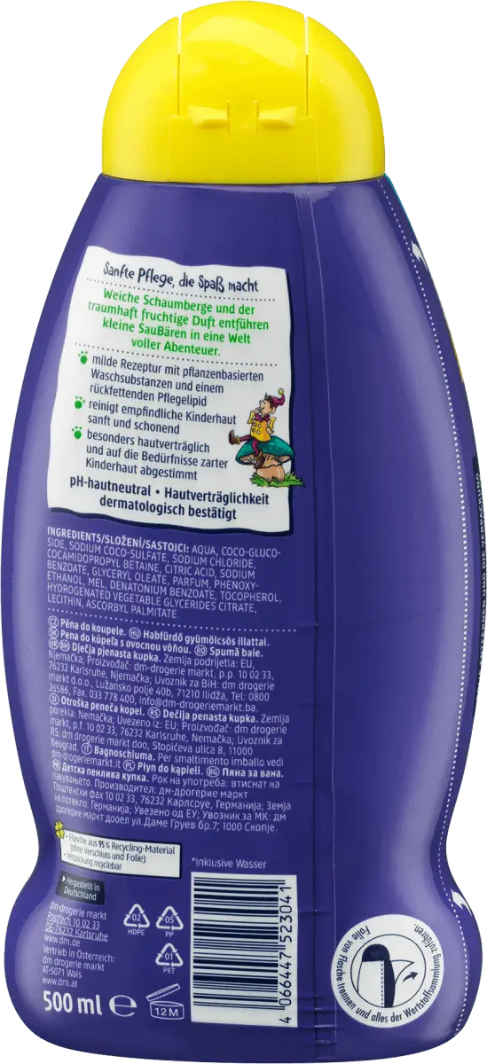 Пенная ванна от SauBär создает в ванне горы мягкой пены и обладает чудесным фруктовым ароматом, который переносит маленьких медведей SauBear в мир, полный приключений. Мягкая формула с моющими веществами растительного происхождения и увлажняющими ухаживающими липидами особенно бережно очищает чувствительную детскую кожу. Добавка для ванн хорошо переносится кожей и адаптирована к потребностям нежной детской кожи.