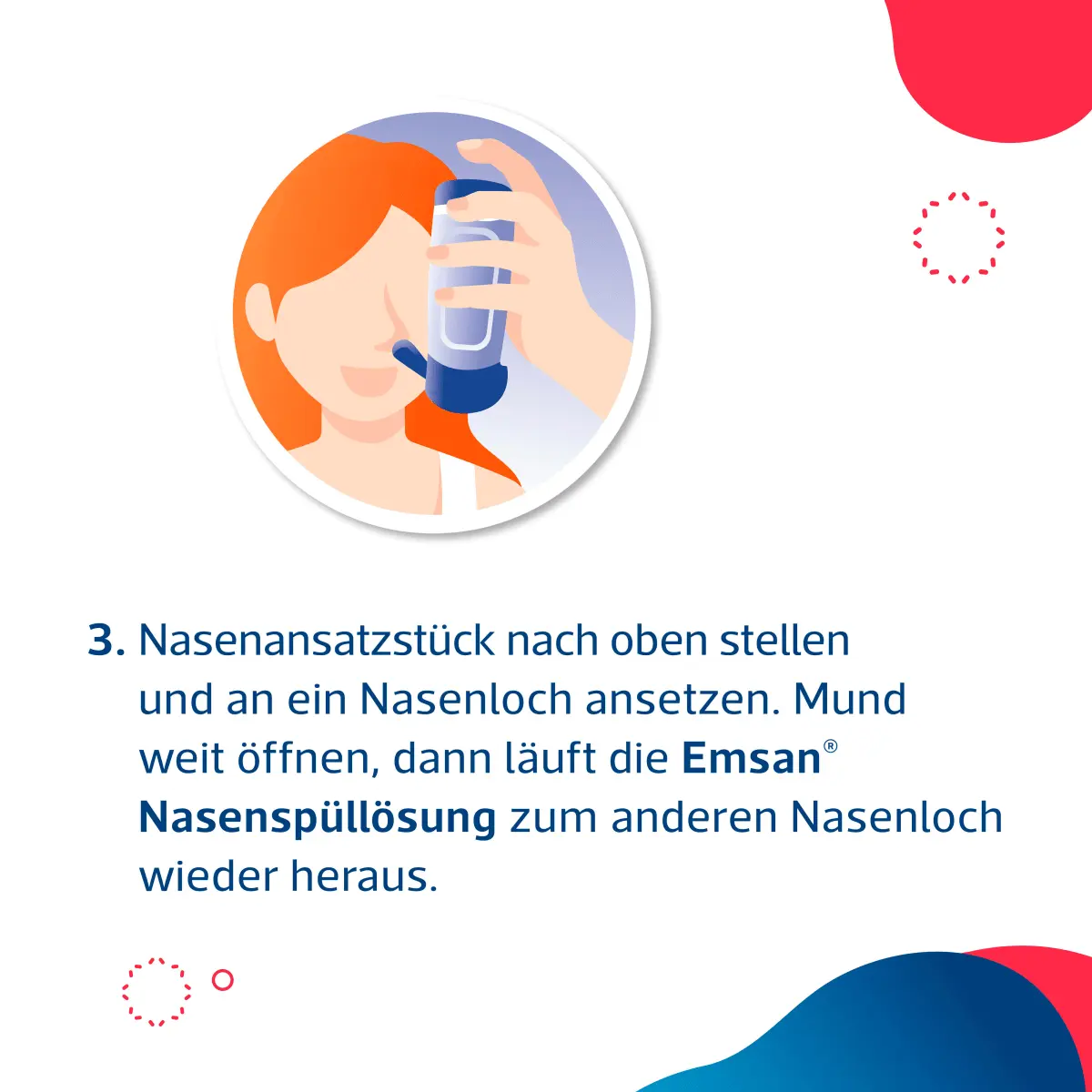 Назальный душ Emsan в комплекте для бережной очистки, включая 10 пакетиков для носа. Соль для полоскания носа, 5000 мл. Раствор для полоскания носа — натуральное средство от заложенности носа, насморка и аллергии. Очищает, увлажняет и снижает вирусную нагрузку. Благодаря согласованному объему заполнения можно легко достичь оптимальной концентрации промывочного раствора. Таким образом, вы сможете тщательно и бережно очистить нос от таких загрязняющих веществ, как пыль, грязь, болезнетворные микроорганизмы, аллергены и вирусы. Укрепляются собственные защитные силы организма.