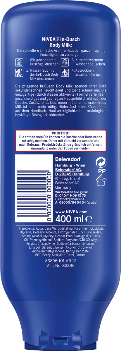Молочко для тела Молочко для душа для тела 0,4 л NIVEA