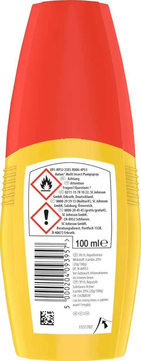 Равномерно распылите средство на все участки кожи, которые необходимо защитить, а затем полностью разотрите рукой. . Мы рекомендуем, например. Б. использовать примерно 6-7 распылений/~1мл на область предплечья. Для нанесения на лицо распылите непосредственно на ладонь и аккуратно распределите по лицу, избегая области глаз и рта. Не распыляйте на руки детей. Если эффект пройдет, используйте еще раз, как описано.