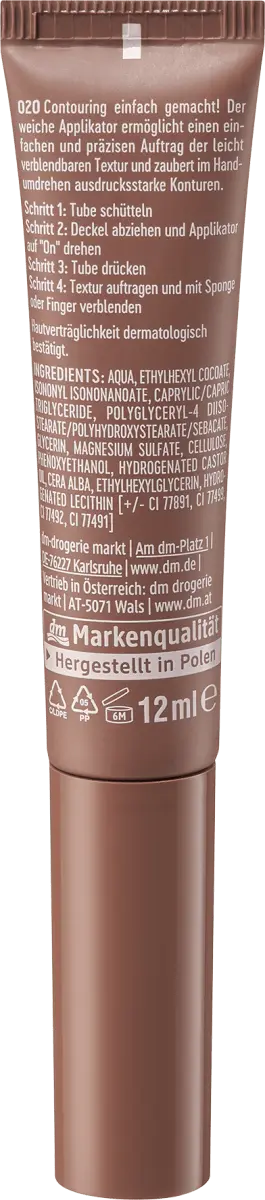 Контурирование стало проще – в соответствии с трендом !t up Cream Matte Contouring цвета 020 Dark Brown. Мягкий аппликатор обеспечивает легкое и точное нанесение продукта. Кремовая текстура легко растушевывается и мгновенно создает выразительные контуры. Благодаря встроенному аппликатору макияж также идеально подходит для использования в дороге.