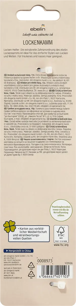 Расческа для завивки от ebelin подходит для сухих и влажных волос одновременно. . Он отличается очень широким расположением зубцов и идеально подходит для легкой укладки локонов и волн. Для великолепного вида волос.