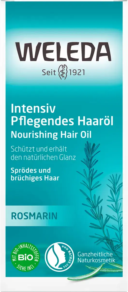 Интенсивно питательное масло для волос с розмарином от Weleda питает волосы мягкий и податливый. Естественный блеск сохраняется и защищается. Масло содержит масло розмарина, экстракты цветков клевера и корня лопуха. Содержащееся в нем эфирное масло лаванды оказывает успокаивающее действие и обеспечивает дополнительное расслабление кожи головы.