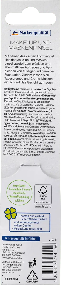 Классической формы, пастельного цвета подойдет макияж – и кисть для маски от ebelin, специально предназначенная для точного и равномерного нанесения и растушевки жидкой и кремовой основы. Дневные кремы и крем-маски также легко наносятся на лицо.
