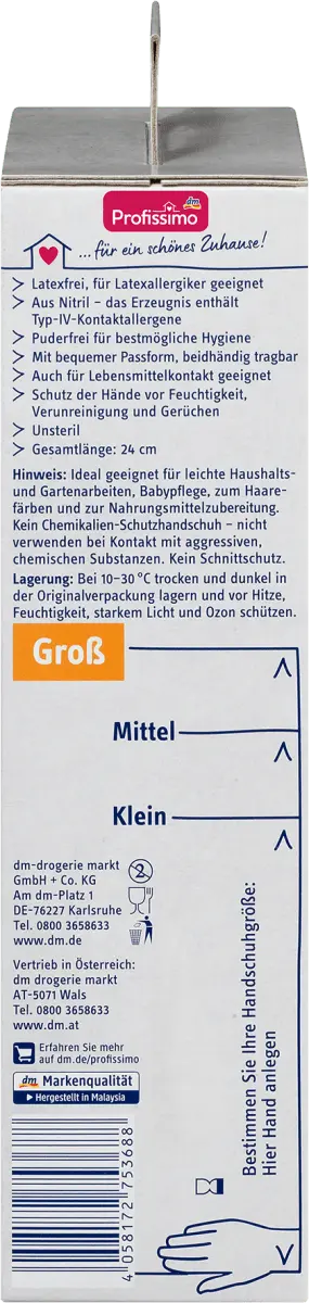 Белые одноразовые перчатки Profissimo Large из нитрила, не содержащие латекса, защищают руки от влаги, загрязнений и запахов. Они не содержат латекса, что делает их подходящими для людей с аллергией на латекс. Идеально подходит для легкой работы в саду, ухода за детьми, окраски волос и приготовления пищи. Это не перчатки химической защиты. Пожалуйста, не используйте их в контакте с агрессивными химическими веществами. Кроме того, они не обеспечивают никакой защиты от порезов.