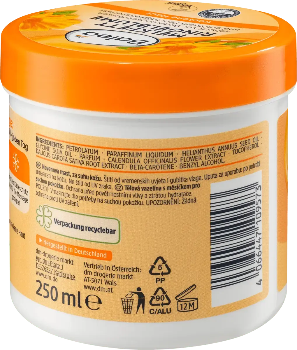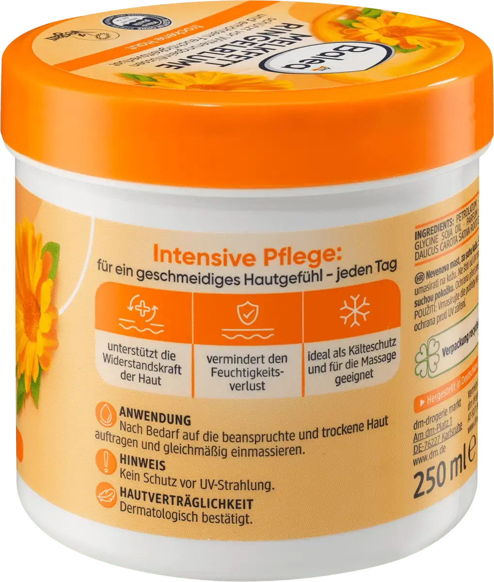 Balea Milking Fat Marigold – это крем для особо жирной кожи, который интенсивно ухаживает за сухой и подверженной стрессу кожей. Специальная формула уменьшает быструю потерю влаги и тем самым защищает кожу от потери влаги. Кроме того, поддерживается сопротивляемость кожи. Поскольку крем защищает от воздействия непогоды, он также идеален в качестве защиты от холода, а также подходит для успокаивающего массажа. Рецепт без микропластика и водорастворимых, чисто синтетических полимеров.