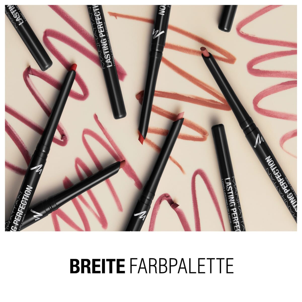 br>Идеалы красоты или нет – с карандашом для губ Lasting Perfection Lipliner от MANHATTAN Cosmetics вы получите максимум удовольствия от макияжа губ. Почему? Потому что ультратонкий наконечник с вращающимся механизмом позволяет рисовать максимально точные линии. Никаких пятен и нежелательных следов – только совершенство, благодаря которому создается исключительный макияж. Интенсивный цвет и стойкая текстура — еще одна причина расширить свою коллекцию макияжа с помощью этого карандаша для губ. Кремовая, мягкая консистенция почти тает на коже и воплощает мечты в реальность. Для губ, в которые влюбляются!