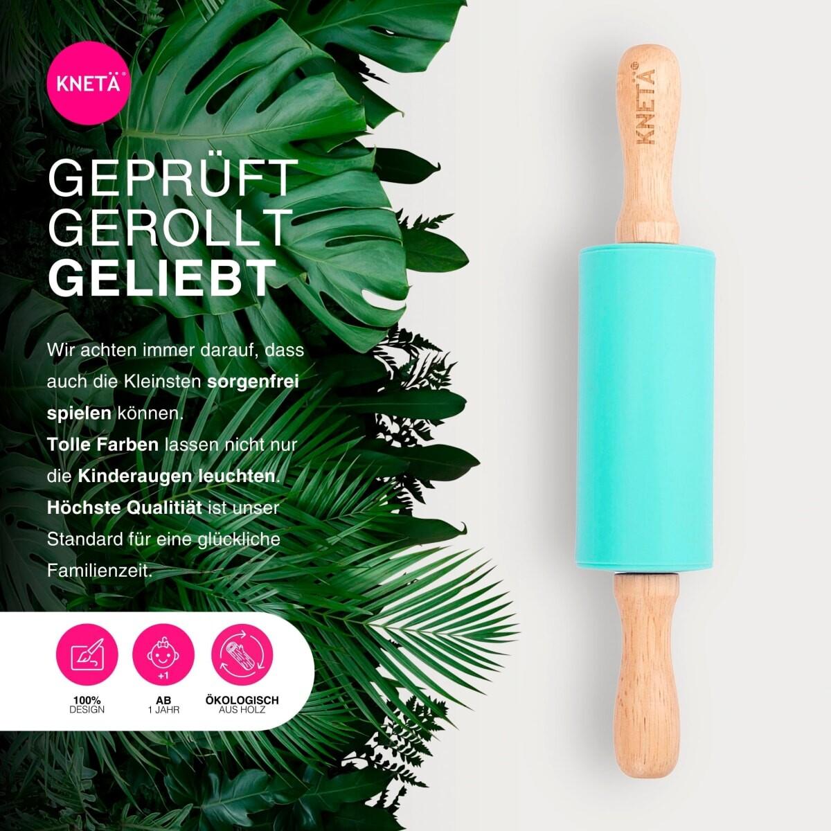 Водолазка KNETÄ красивого мятного цвета – идеальный аксессуар для игра с пластилином. Качественная небольшая скалка изготовлена ​​из возобновляемого сырья и подходит для детей от года и старше. Формируя и раскатывая тесто, можно добиться небольших и легких успехов.
