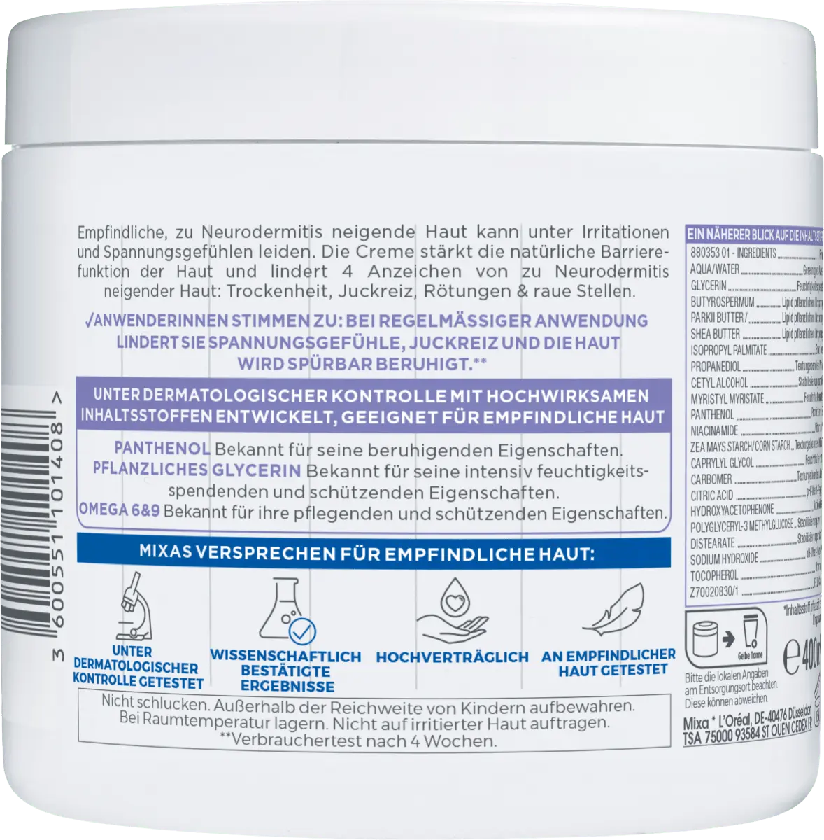 Успокаивающий крем для кожи Mixa подходит для ухода за кожей лица, тела и рук. склонен к нейродермитам. Крем с пантенолом можно наносить на кожу после очищения и по мере необходимости, а затем массировать легкими круговыми движениями. Перед одеванием дайте средству по уходу за кожей полностью впитаться. При нанесении крема избегайте области вокруг глаз. Не глотай. Хранить в недоступном для детей месте.