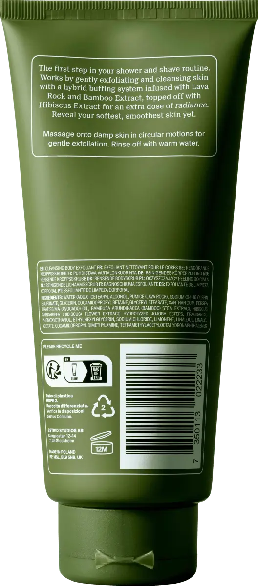 Эссенциальный пилинг-эксфолиант от Эстрид подходит отлично для ухода за кожей перед бритьем. Кожа подготавливается к бритью, удаляются омертвевшие клетки, жир и грязь. Входящие в комплект экстракты лавового камня и бамбука очищают и отшелушивают. Содержащееся в нем масло авокадо питает, а экстракт цветов гибискуса придает коже сияние.