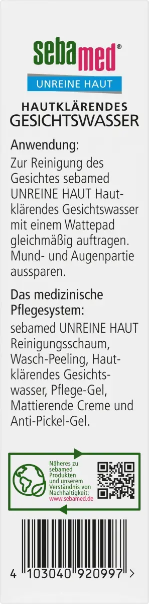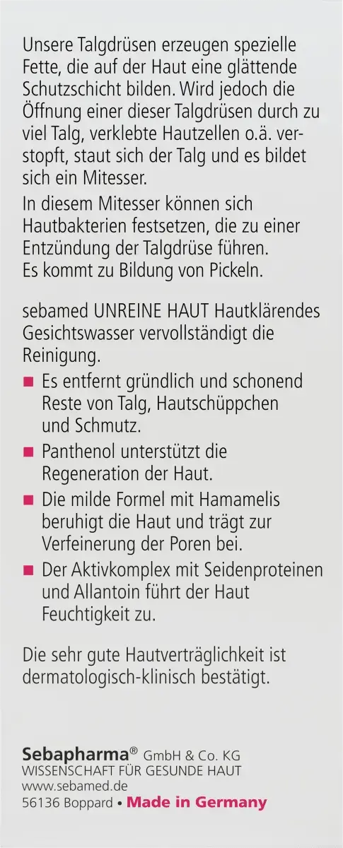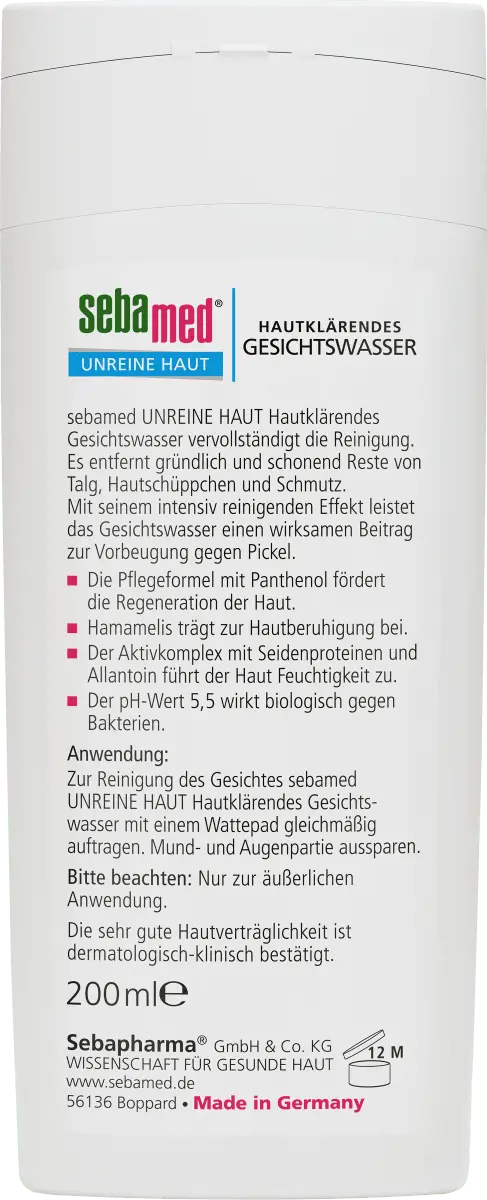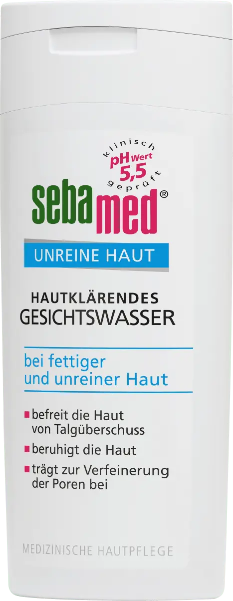 Тоник для лица sebamed Impure Skin завершает очищение и благодаря своему интенсивному очищающему эффекту оказывает эффективное вклад в предотвращение прыщей. Тщательно и бережно удаляет остатки кожного сала, ороговевших клеток кожи и загрязнений.