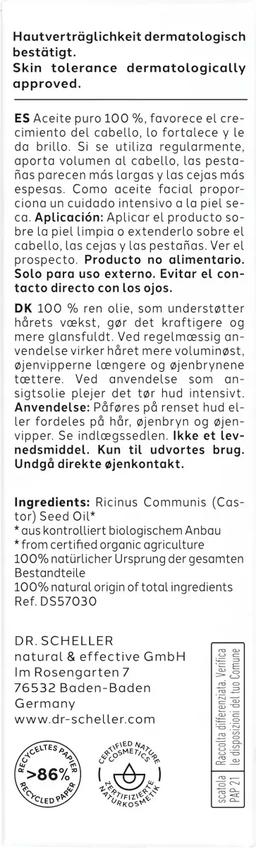 Чистое касторовое масло от DR.SCHELLER – настоящее универсальное средство: органическое масло холодного отжима подходит как для кожи, так и для волос. Масло без отдушек поддерживает рост волос, бровей и ресниц и придает им потрясающий блеск. Используемое в качестве масла для лица, оно интенсивно питает сухую кожу.