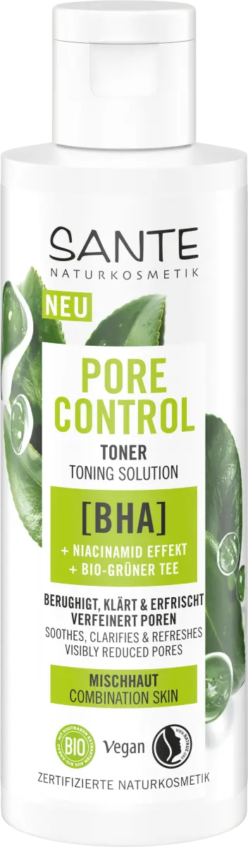 Тонер Pore Control BHA от SANTE NATURKOSMETIK с ниацинамидным комплексом и зеленым чаем освежает и очищает кожу, не раздражая. Для длительного и равномерного ощущения кожи - день за днем.