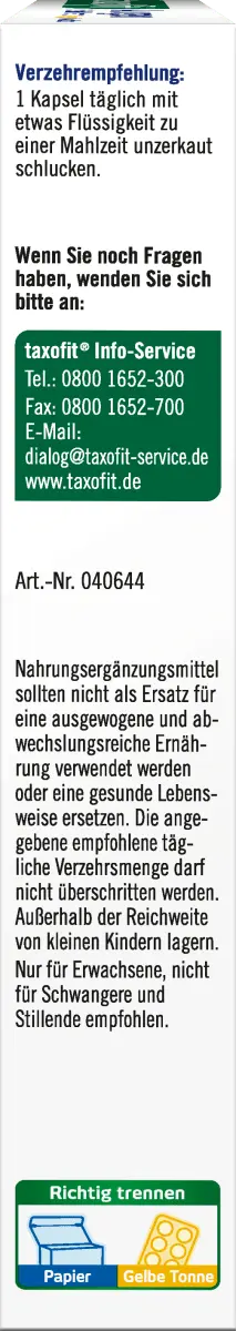 >Наши глаза часто подвергаются большой нагрузке – от работы за компьютером, постоянного просмотра мобильного телефона, длительных поездок на машине, просмотра телевизора, сухого воздуха в помещении и многого другого. Кроме того, с возрастом зрение может ухудшаться. Taxofit Eyes Vision с витамином А, В2 и цинком помогает поддерживать зрение, а антиоксиданты, витамины С, Е и селен помогают защитить клетки от окислительного стресса. Добавленные лютеин и зеаксантин также являются каротиноидами и не могут вырабатываться самим организмом.