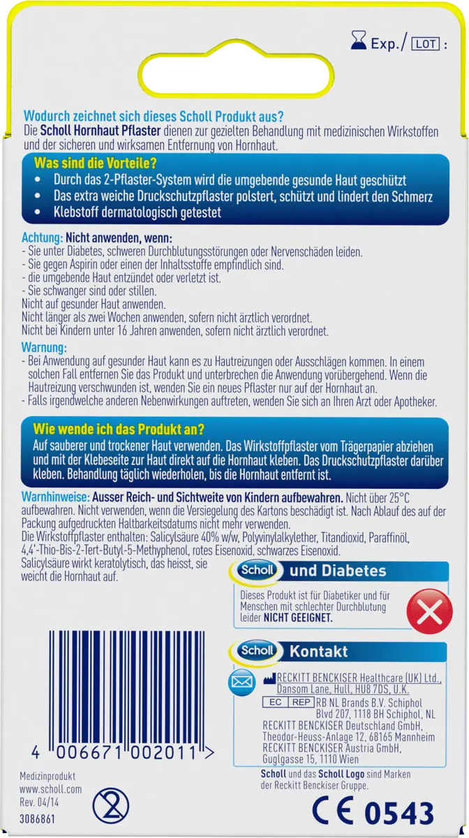 Пластырь для удаления мозолей Scholl особенно надежно прилегает и способствует удалению мозолей . Целенаправленное воздействие не только удаляет огрубевшую кожу, но и облегчает боль. Эффект проявляется непосредственно на мозоли, не повреждая окружающие участки кожи.