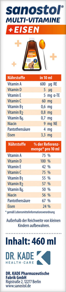 Мультивитамин плюс сок железа от Саностол имеет приятный апельсиновый вкус и содержит сочетание девяти витаминов и железа. Содержащееся в нем железо может способствовать нормальной транспортировке кислорода в организме и снижению усталости и усталости. Кроме того, витамины А, В6, С и D могут поддерживать нормальную функцию иммунной системы. Благодаря вегетарианской текстуре БАД идеально подходит для вегетарианской диеты.