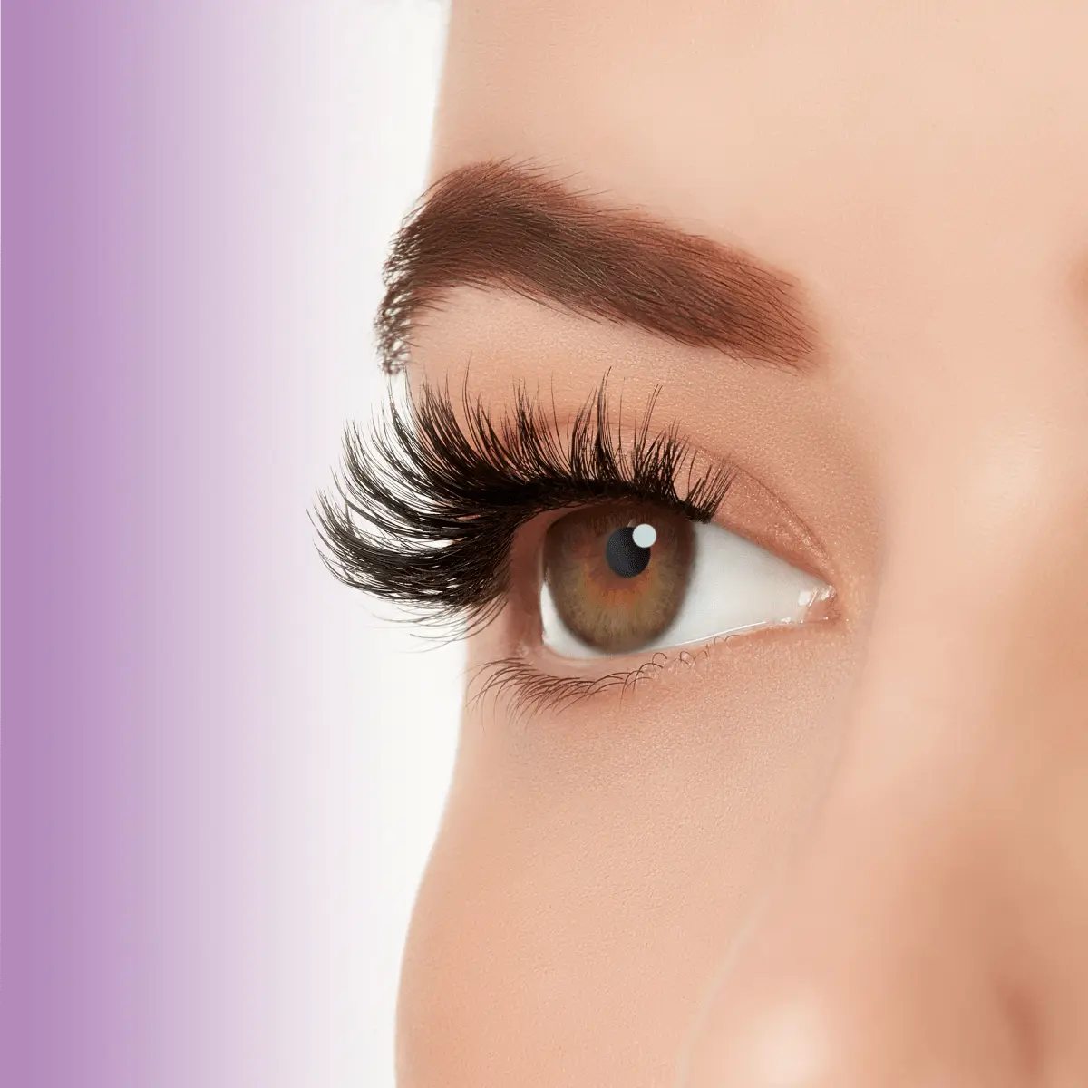 1. Проверьте посадку: совместите ленту с естественной линией ресниц, чтобы проверить посадку. При необходимости отрежьте лишнее. 2. Нанесите клей: нанесите тонкий слой клея вдоль ленты. Подождите 30 секунд, пока он не затвердеет. 3. Наклейте ресницы: закрепите ленту для ресниц, прижав ее к основанию ресниц.